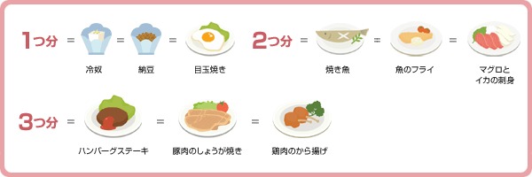 このエネルギー量を摂取する上で必要な食事量としては、以下のとおりです。